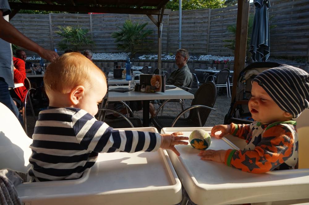 Wir wollen am nächsten Morgen früh weiter fahren, aber vorher verbringen wir noch einen wahnsinnig entspannt unterhaltsamen Abend mit Anni, die ich 2011 in Neuseeland kennengelernte, ihrem Freund Stefan und ihrem Sohn Jesper. Auch sie sind in ihrer Elternzeit unterwegs. Im Restaurant hat plötzlich jemand die Idee, dass man die beiden Babies auch gegenüber setzen könnte, damit sie sich ihre Spielsachen gegenseitig zuwerfen und wir nicht ständig alles aufheben müssen.