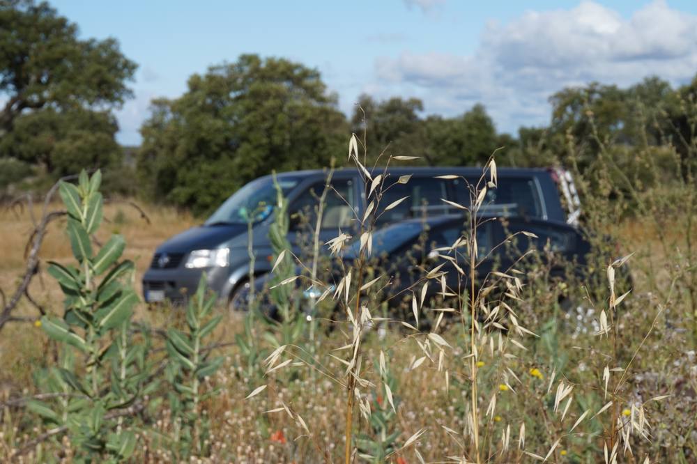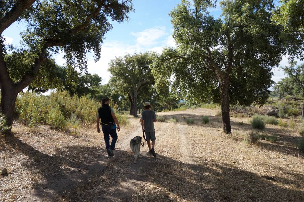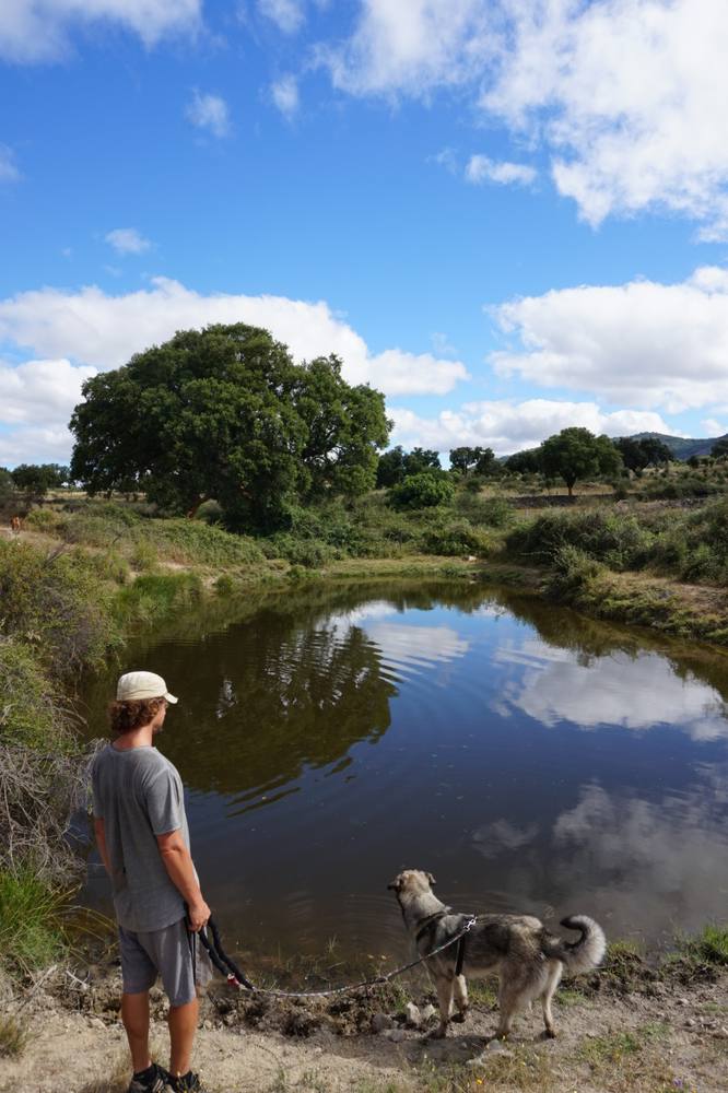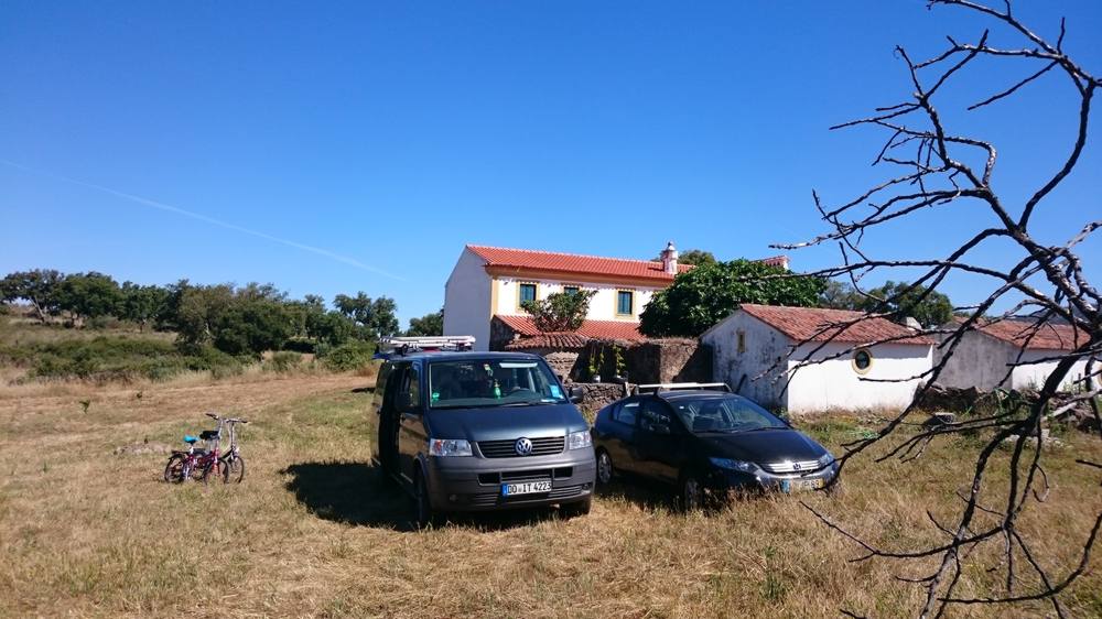 Wir sind sehr gespannt, denn nur bruchstückhaft puzzeln wir zusammen, was uns dort erwartet: Marc, ein Kindergartenfreund von Matthias' Schwester wohnt irgendwo in Portugal auf dem Land, an einem Fluss und will dort eine Pension eröffnen. Jedenfalls scheint er sich über Besuch zu freuen, so klingen die Mails, die er Matthias schickt. Wir fühlen uns ganz abenteuerlich, als es in der WhatsApp heisst, auf der Landstraße von Portalegre zwischen km 17 und 18 müssten wir auf den Feldweg abbiegen und er würde uns mit dem Rad abholen.