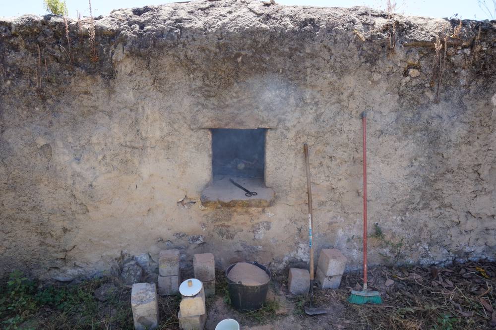 Ich mache Feuer und während der alte Ofen langsam aufheizt einen Hefeteig. Natürlich alles etwas ad hoc, aber die Brotfladen, die wir daraus backen waren durchaus lecker.