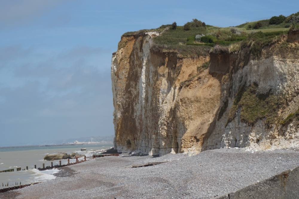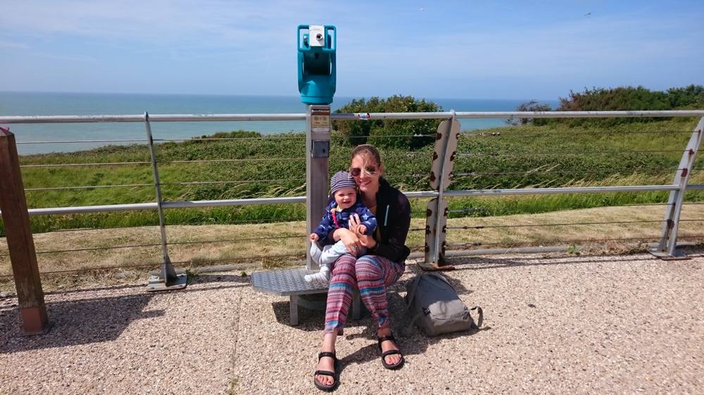 In Dieppe erwarteten uns ganz andere klimatische und geografische Bedingungen. Es war zwar sonnig, aber windig, und der Campingplatz Marqueval mag nur 2km vom Meer entfernt sein, aber die Steilküste und Steigungen waren bis dahin nicht eingeplant gewesen. Als wir ankamen beschloss Matthias, es sei wichtig einen Lenkdrachen zu kaufen und Decathlon sei über einen nur kurzen Umweg auf dem Weg in die Stadt zu erreichen. Ok! Also ging es los über den erst schönen Radweg, der aber nicht ganz zu Decathlon führte und eigentlich schon sehr bald aufhörte.