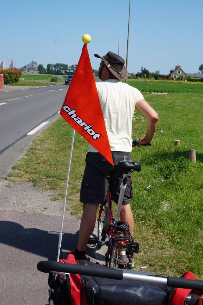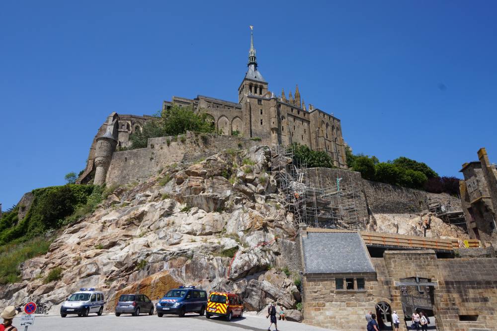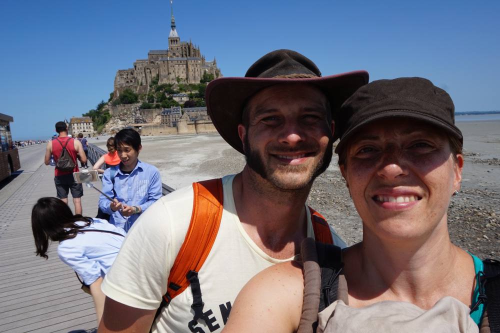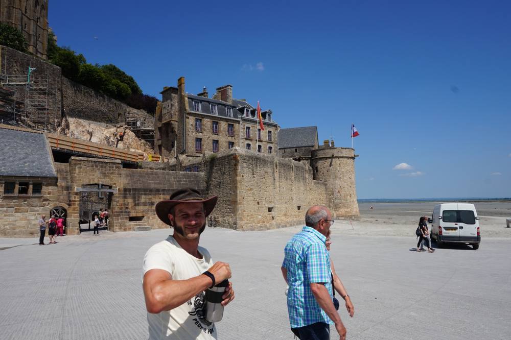 Auf unserer Reise Richtung Holland, wo wir am 21.6. von der Lichtfeschdgruppe erwartet werden, liegt der Mont St. Michel ganz richtig, um einen Zwischenstopp einzulegen. Die Abtei Mont St. Michel ist Teil des UNESCO Weltkulturerbes und liegt auf einer Insel im Wattenmeer der Normandie, ca. 1 km vom Festland entfernt. Erfolgreich verwirrt durch die zahlreichen Erklärungen der Campingplatzrezeptionistin dachten wir, es ist nicht erlaubt mit dem Rad den langen Steg bis zur Abtei zu fahren. Hätten wir es lieber einfach getan.