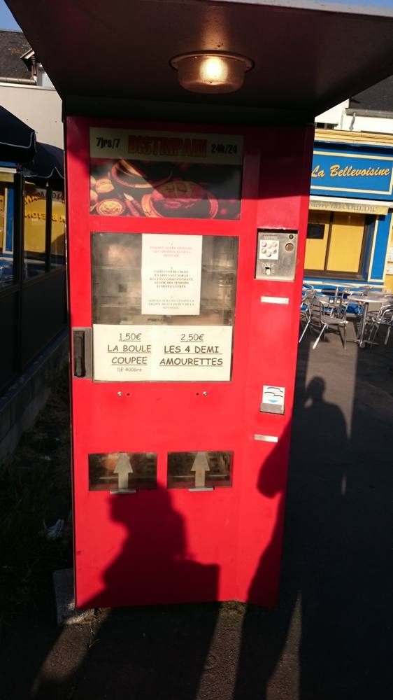 Ergänzend möchten wir noch auf eine weitere Entdeckung aufmerksam machen, dem Baguette Automaten. Schon an einer Autobahnraststätte hatten wir einen gesehen und sein Baguette probiert. Warm und knusprig kam das Baguette aus dem Automaten. Faszinierend!